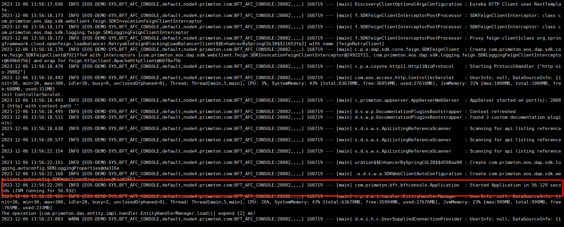 console start detail log see /home/bft76/Primeton_BFT_7.6.0_Console/logs/eos-trace.log