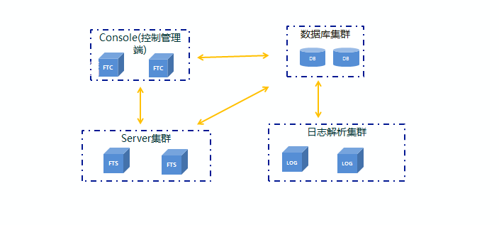 部署多台控制管理端Console, 管理服务器Server ,日志解析Logcenter,各模块均集群部署,且不引入第三方 软件