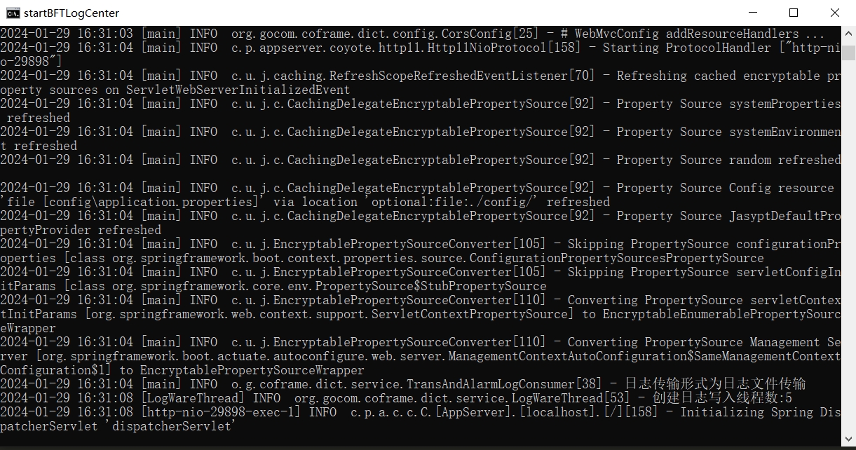 1.启动BFT Console运行“D:\temp\win_install\LogCenter_Install\startBFTLog.bat”,出现以下内容,表明BFT LogCenter启动成功