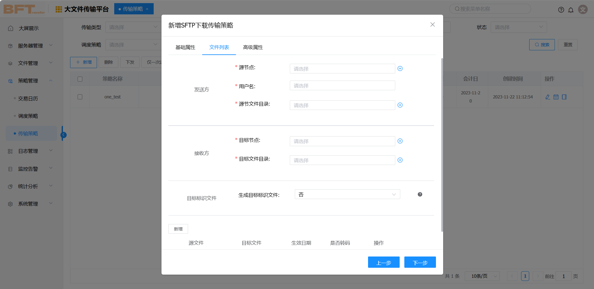 点击【新增】按钮, 选择【SFTP下载】,配置传输策略。