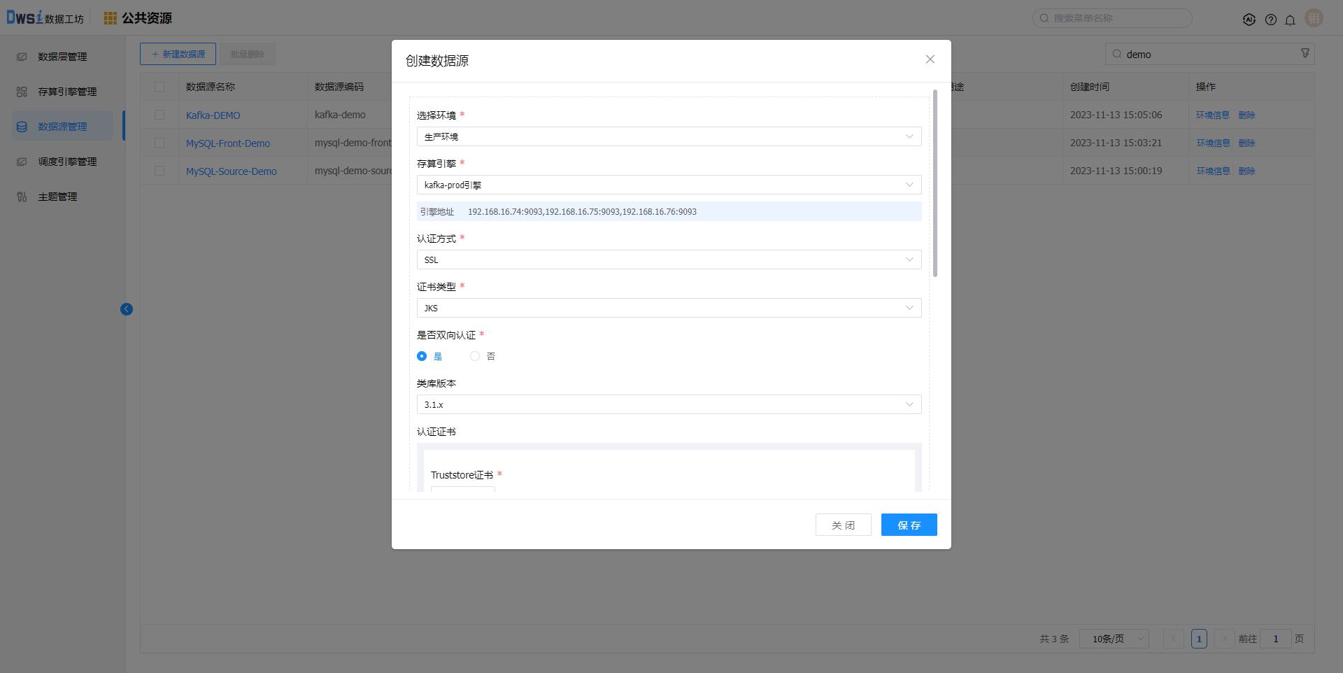 重复上述步骤,创建kafka的存算引擎。