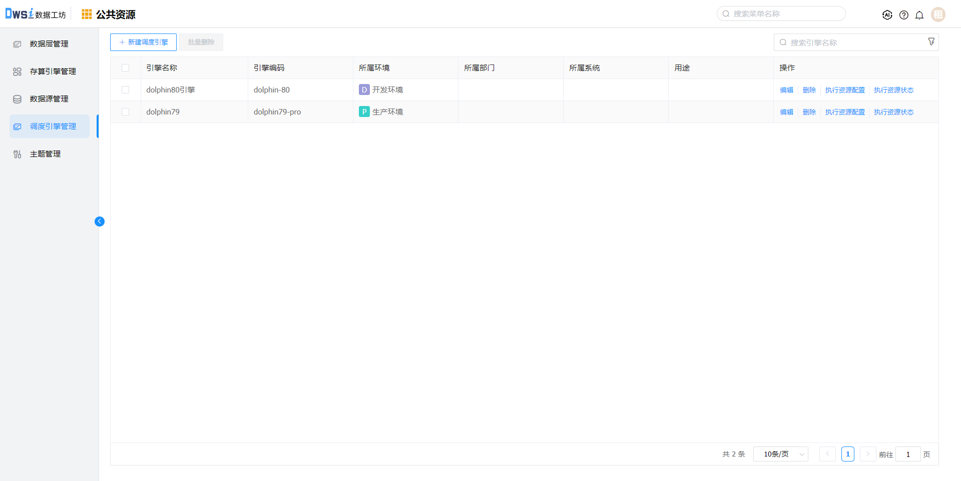 重复上述步骤,创建生产环境的调度引擎。