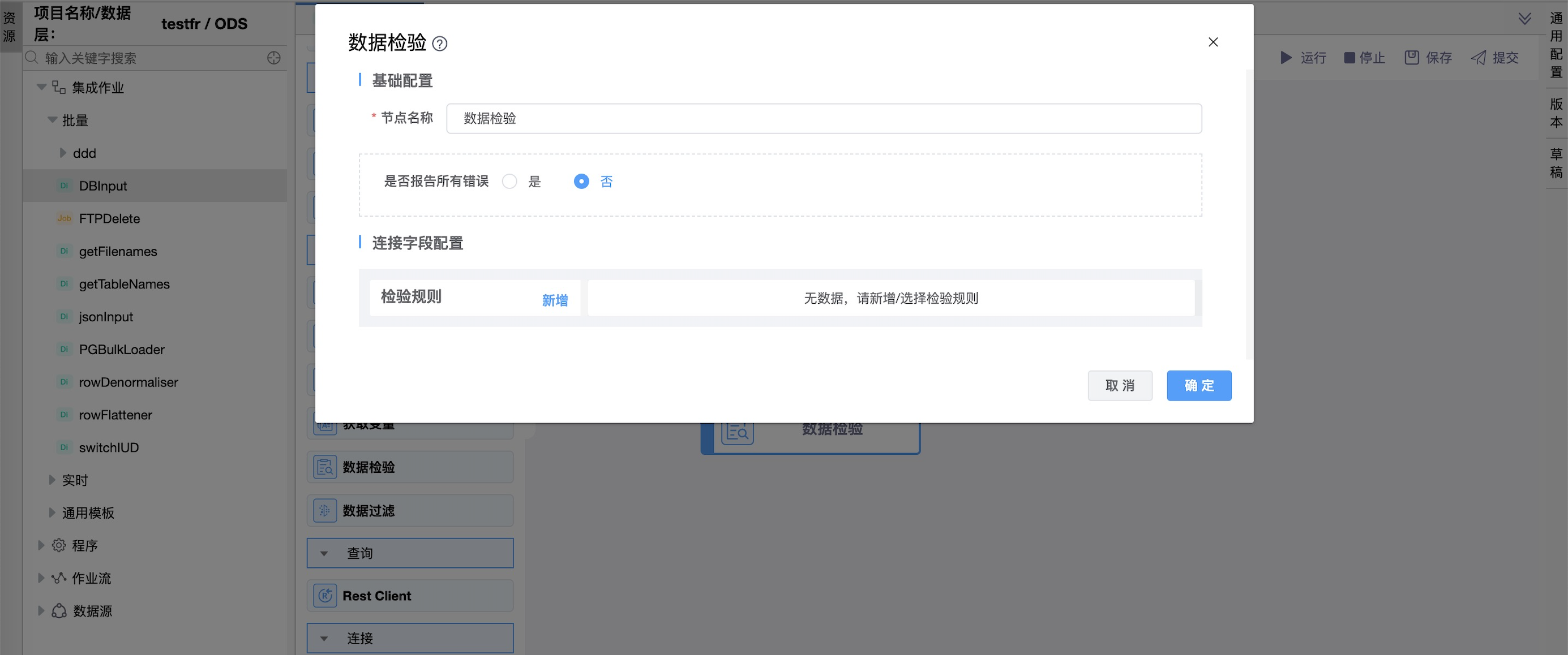 Data Validator步骤允许您定义简单的规则来描述字段中的数据应该是什么样子。这可以是一个值范围、一个不同的值列表或数据长度。
