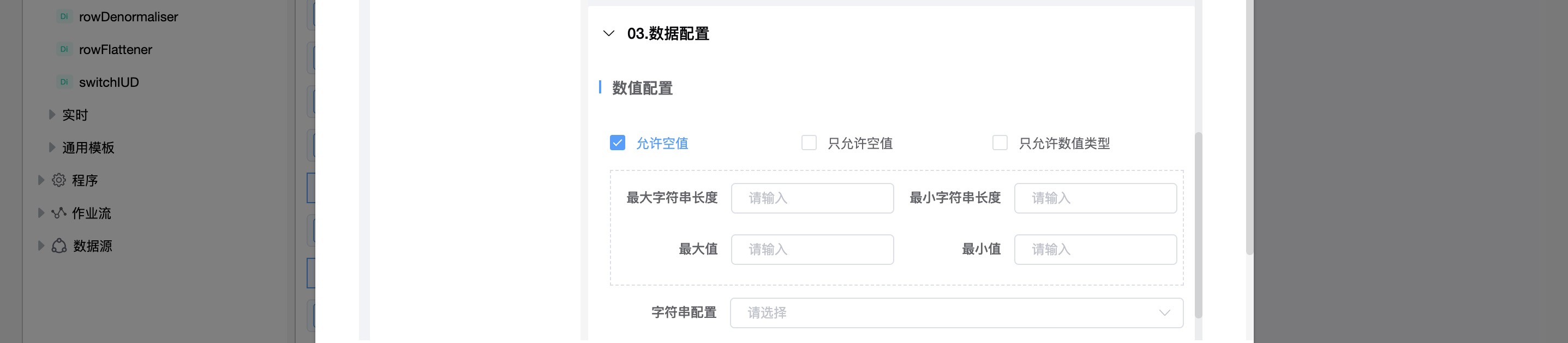 | 允许空值 | 如果您不希望在所选字段的数据中允许空值,请禁用此选项。 |