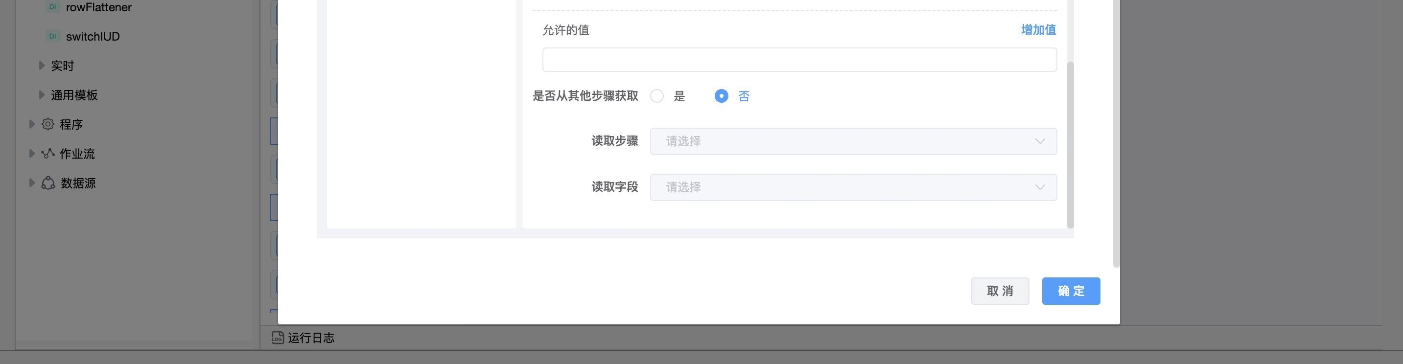 | 读取步骤 | 选择了“从其他步骤获取”,需要指定读取的步骤。 |