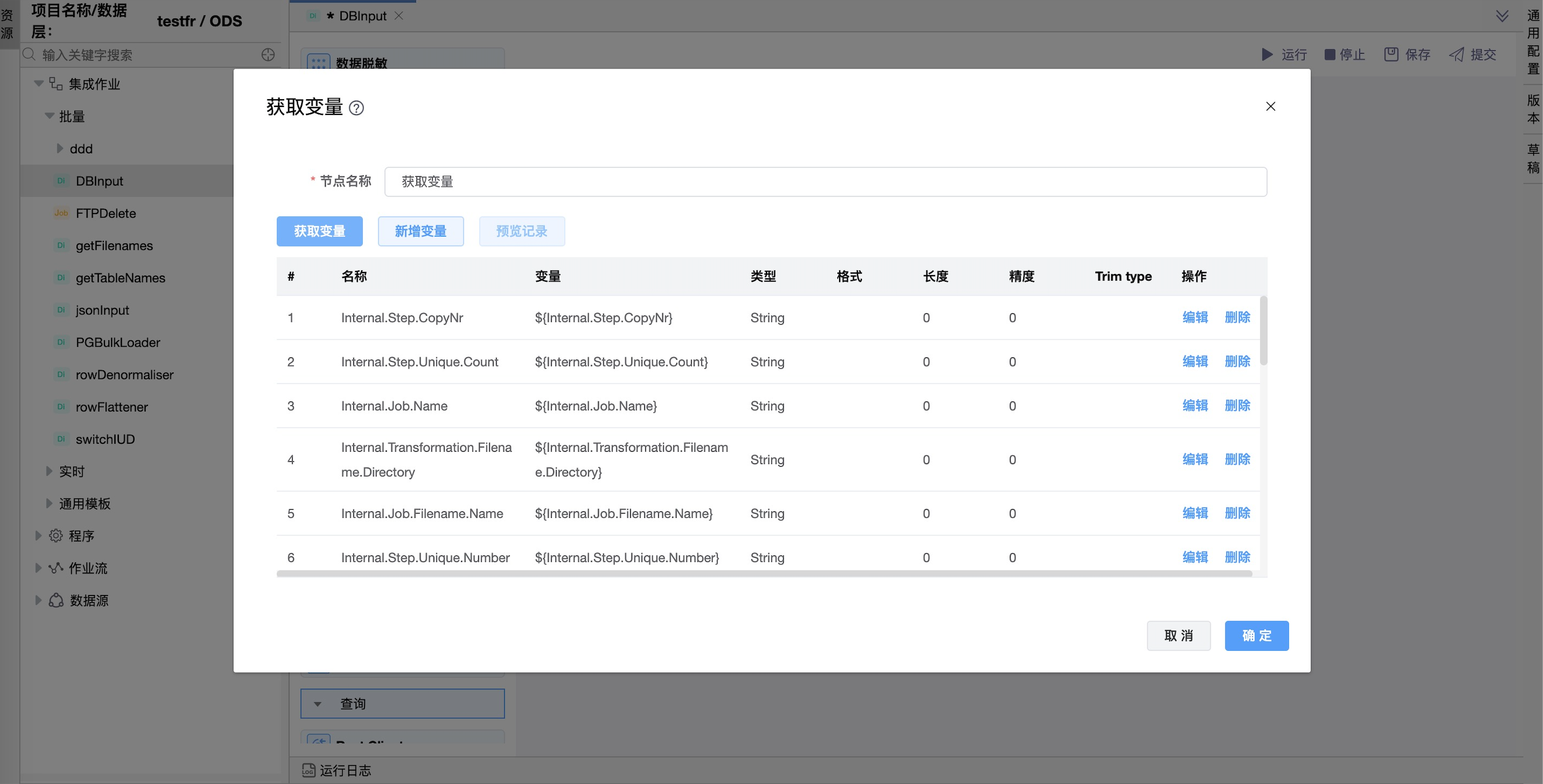 功能介绍:该组件用于设置环境变量,范围可以是:JVM变量、作业变量、父作业变量、根作业变量。使用时通过${var}或 %%var%%变量方式引用变量。