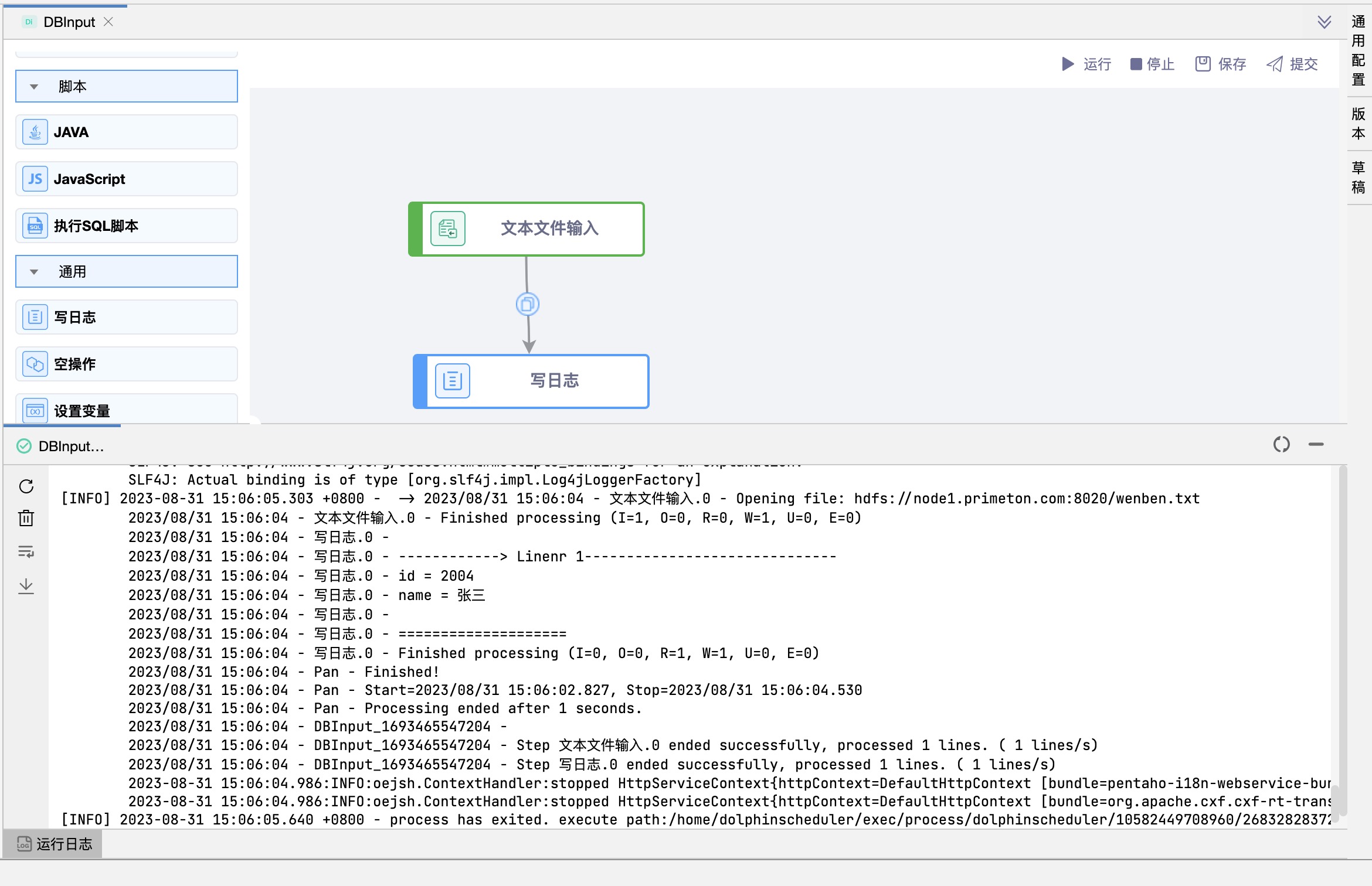 功能介绍:该组件将信息写入PDI日志系统。
