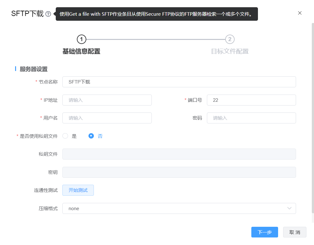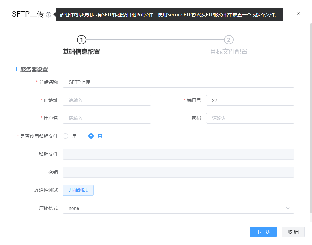 | 压缩格式 | 指定sftp数据压缩传输格式 |