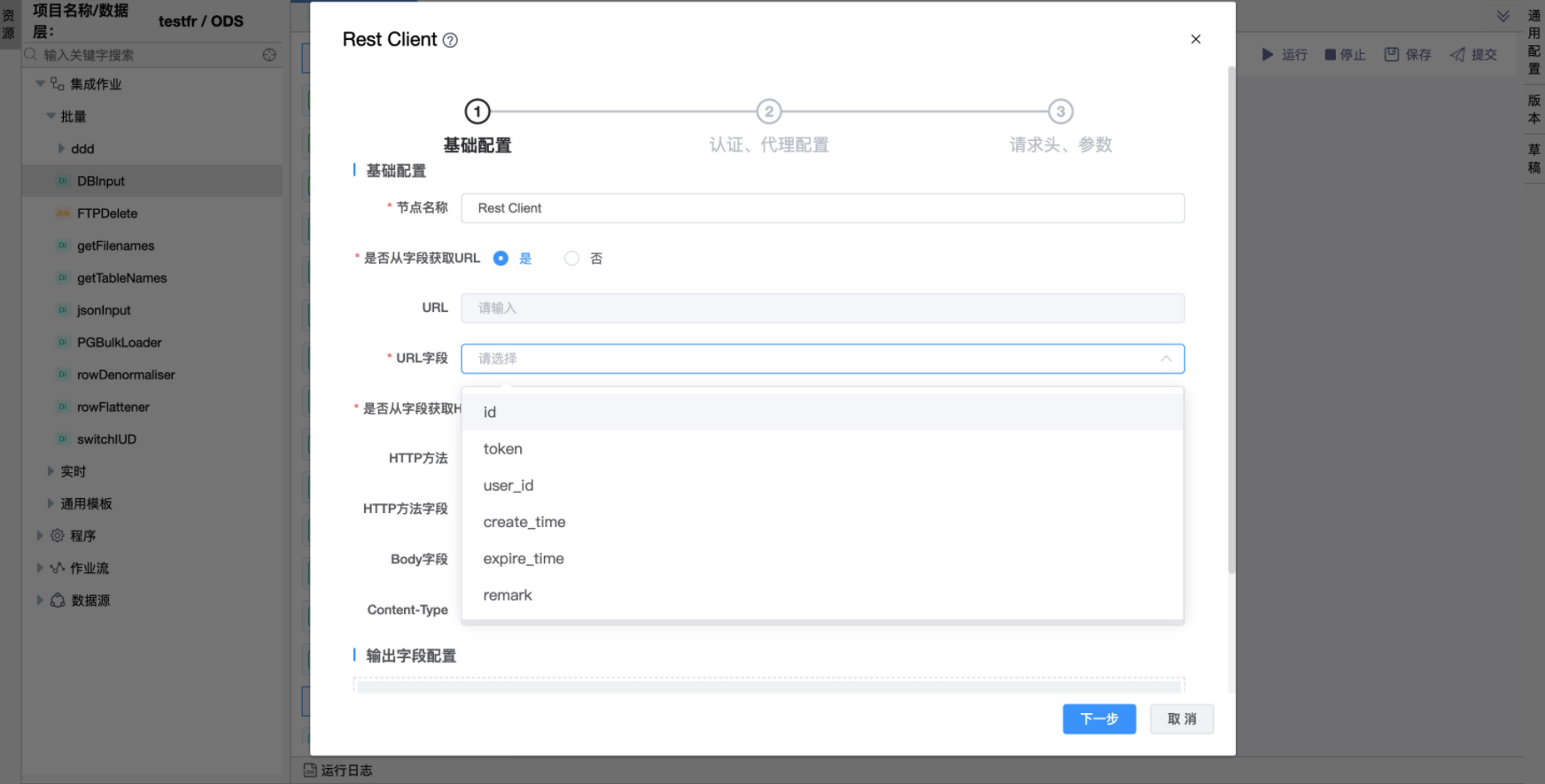 此时URL字段需要从上级节点输出的字段list中选择定义。