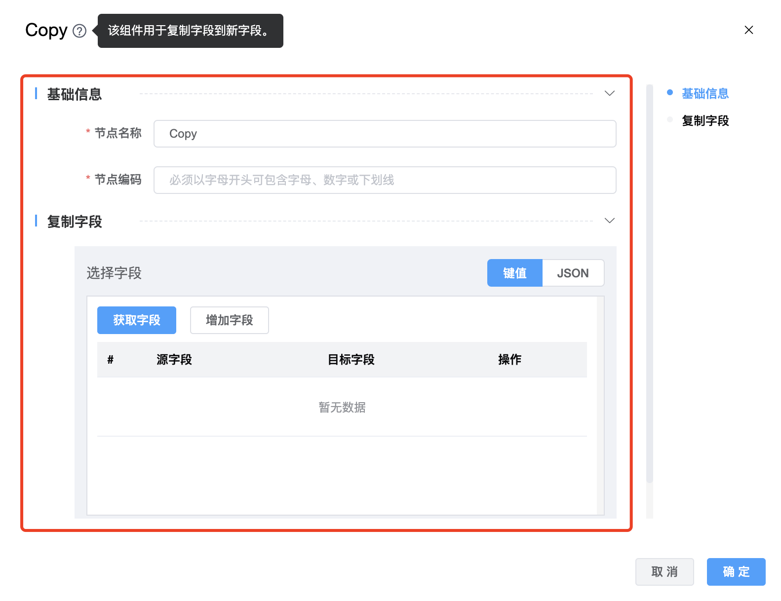 使用场景:该组件用于复制字段到新字段。