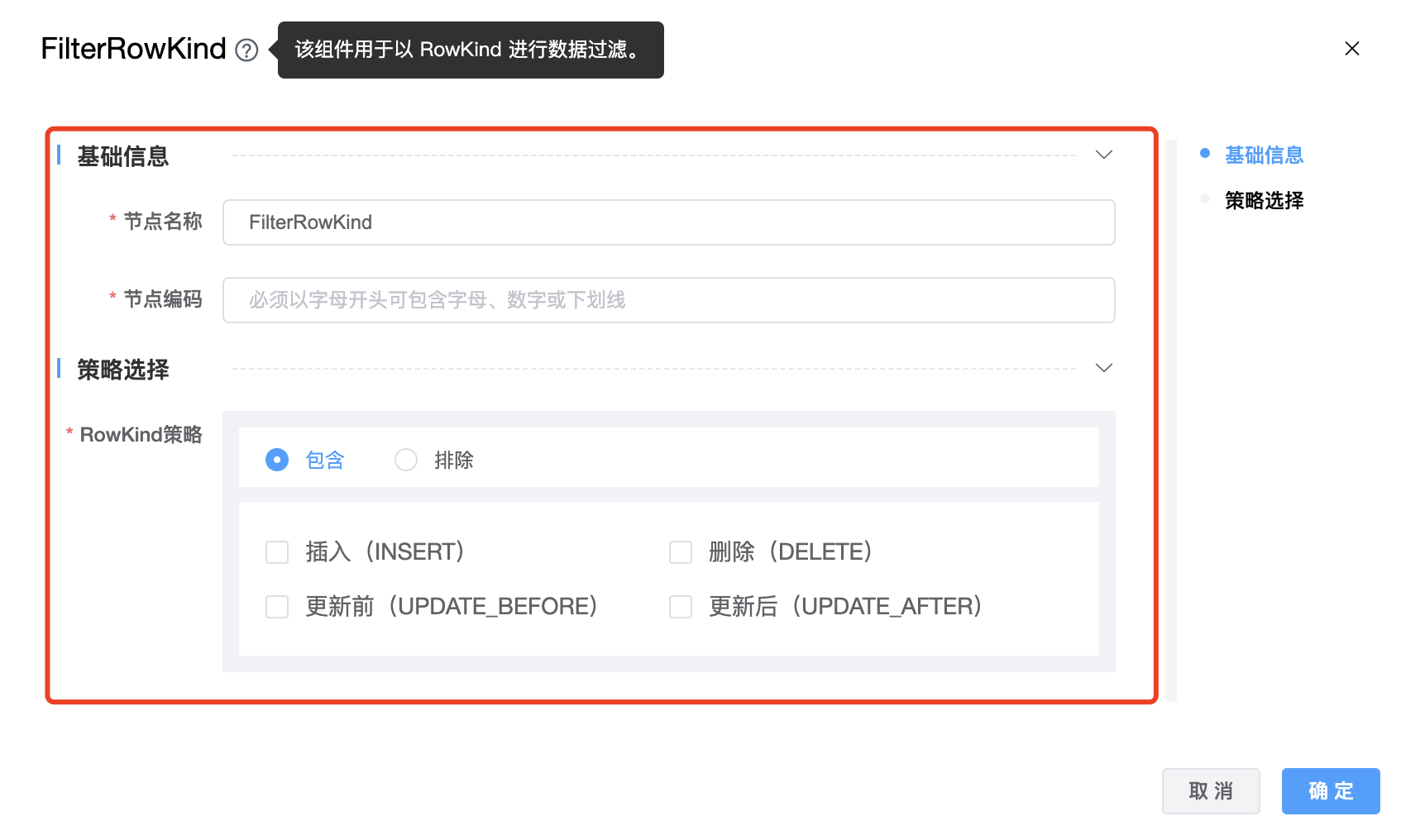 使用场景:该组件用于以 RowKind 进行数据过滤。