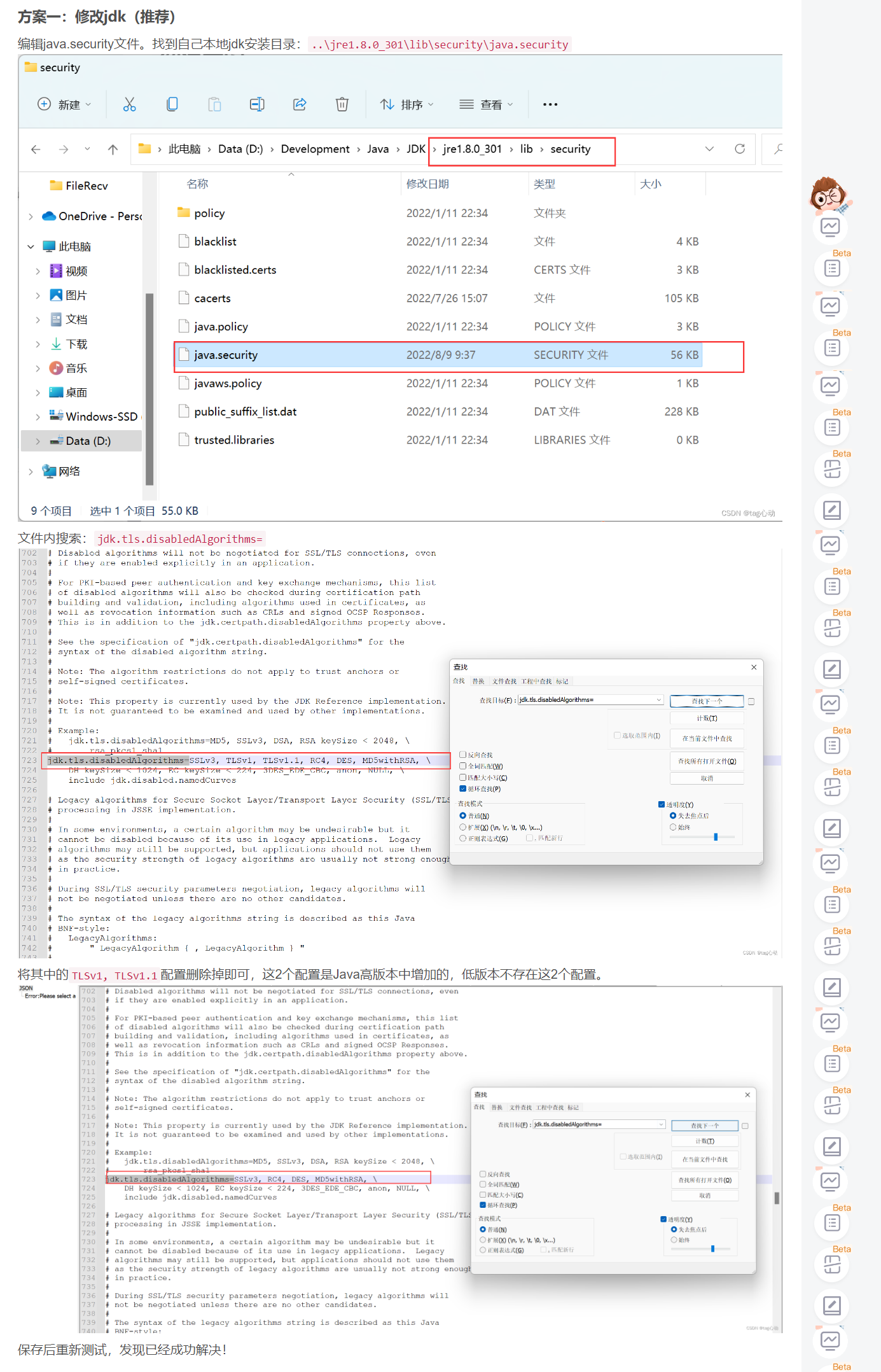 # A: 参考如下方案,建议修改前做好jdk备份
