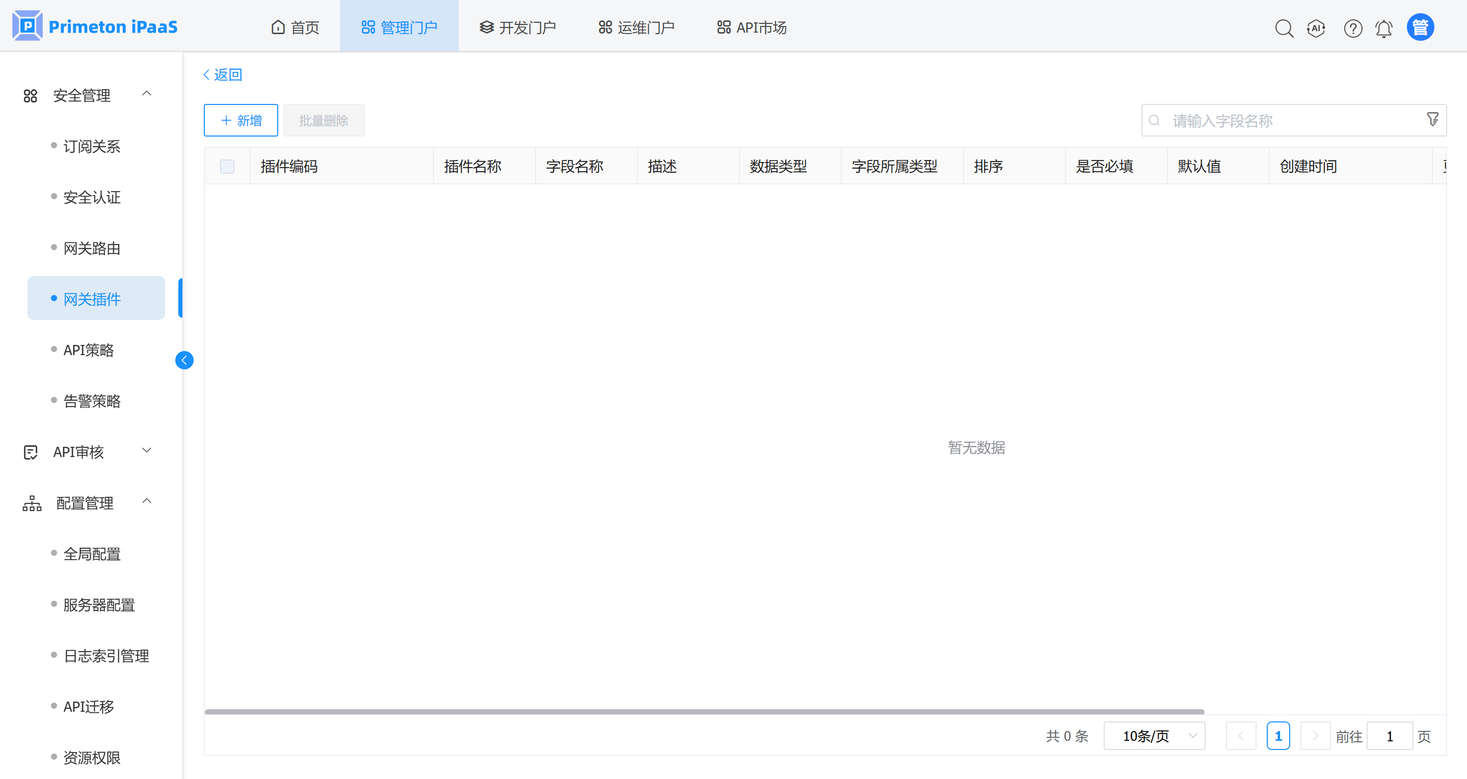 1. 管理人员登录系统,进入管理门户,点击菜单“安全管理”>"网关插件“,进入网关插件页面。