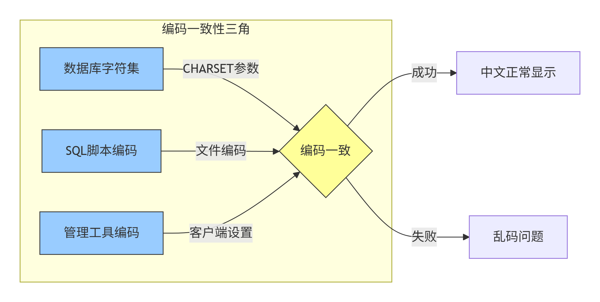 2. 执行环境差异:在数据库初始化过程中,执行UTF-8编码的SQL脚本时,管理工具可能按GBK编码解析,导致中文字符被错误解析和存储。